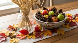 Display bowls of pinecones, acorns, or colorful fall leaves.