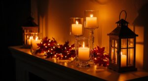 As days get shorter, lighting becomes an essential part of fall decorating. Candles, lanterns, and string lights add warmth and ambiance.