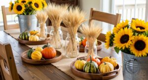 Nothing captures fall quite like bringing elements of nature inside. Fill vases with dried wheat, branches, or fresh sunflowers.