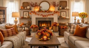 Even small additions like wood trays, rattan baskets, or a garland of autumn leaves bring an earthy touch to your autumn home decor.