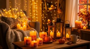 Beyond visuals, home decor is about atmosphere. Lighting and scent add an unforgettable touch. Try candles scented with pumpkin spice, cinnamon, or apple cider.
