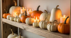 Use them as table centerpieces, line them along stairs, or hollow them out to make pumpkin candle holders. Mixing pumpkins with gourds of different sizes adds variety and charm.