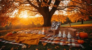 Make the most of mild autumn days by enjoying picnics surrounded by fall foliage. Choose a scenic spot under a tree with changing leaves and bring a basket filled with warm cider, cheese, and freshly baked bread.