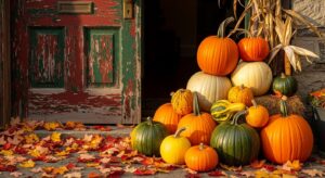 Pumpkins are an essential part of fall front porch decor. Use different shapes, sizes, and colors—white, orange, and even green—to create a dynamic display. Stack them near the doorway or line them along the steps for a natural yet curated look. For added creativity, consider painting pumpkins or adding stenciled designs.