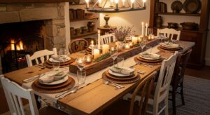 By layering rustic textures, greenery, candles, seasonal accents, and personal touches, you can create a dining space that feels inviting, fresh, and unforgettable.