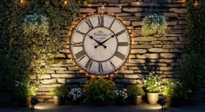 Add function and style with a large outdoor wall clock or a sculptural piece. Choose materials like iron, bronze, or wood for a timeless look.