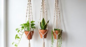 Use macrame hangers to suspend small pots from your wall. It’s a great way to blend natural textures with modern boho aesthetics.