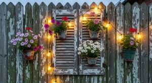 Attach old shutters or vintage window frames to your wall to create a farmhouse-inspired look. Add wreaths, flowers, or fairy lights for extra charm.