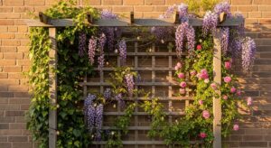 A wooden trellis doesn’t just support climbing plants—it can be art in itself. Paint it, stain it, or decorate it with lights for a rustic yet elegant design feature.