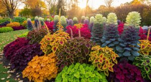 Fall isn’t only about blooms—the leaves themselves are part of the show. Plants like coleus, coral bells, and kale offer striking foliage that lasts well into the season.