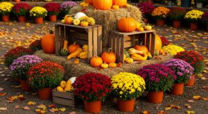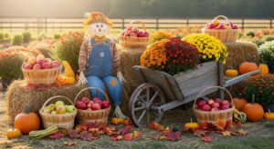 • Rustic Harvest: Pumpkins, hay bales, and corn stalks.