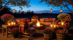 Add a fire pit, rustic benches, outdoor rugs, and warm throws to enjoy crisp autumn evenings.