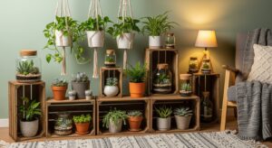 Greenery brings life to any space. Create your own plant stands from wooden crates, hang planters with macramé, or repurpose glass jars as mini terrariums.