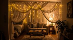 DIY curtains or fabric room dividers can dramatically change a room’s look.