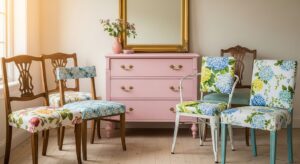 For example, repaint a dresser in pastel tones, add rattan details, or reupholster dining chairs with modern prints.