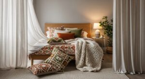Sometimes, all your space needs is a fabric refresh. Replace plain curtains with textured linen ones, or make your own cushion covers using patterned fabric. You can even dye old sheets naturally with coffee, tea, or turmeric for an earthy tone. Updating textiles is a simple yet effective home aesthetic DIY project that instantly softens your home’s look.