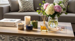 Scented candles, reed diffusers, and essential oil burners add subtle fragrance while doubling as stylish decor pieces.