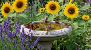 Attract birds, bees, and butterflies by planting pollinator-friendly flowers such as lavender, sunflowers, and coneflowers.