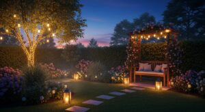 Solar-powered lanterns, fairy lights, and pathway markers create a warm, inviting atmosphere, making your garden enjoyable both day and night.
