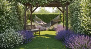 Surround the area with fragrant plants like lavender, jasmine, or gardenias to create a tranquil escape.