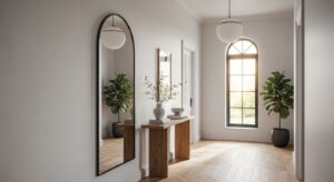 ✨ Pro Tip: Round or arched mirrors soften sharp angles and add elegance to modern interiors.
