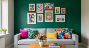 Choose an accent wall in bold shades like emerald green, terracotta, or navy.