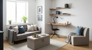 Use mirrors to open up the room, choose multifunctional furniture, and keep a cohesive color palette to avoid visual clutter.
