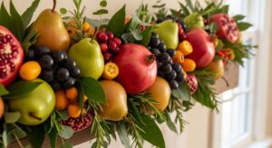 Pears, pomegranates, and berries for an old-world holiday look.