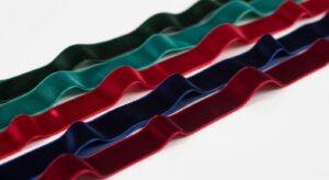 Layered ribbons in multiple widths and textures.