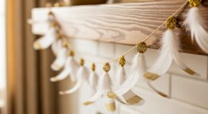 White or metallic feathers add softness and glam.
