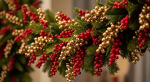 Clusters of red, gold, or white berries add depth and richness.