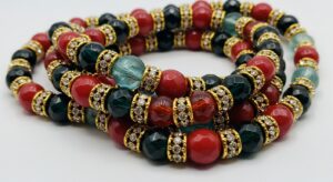 Rich jewel tones, gold beads, and playful elements.
