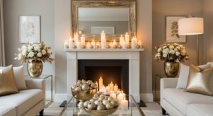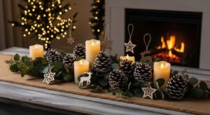 Soft, glowing light is the secret to cozy holiday ambiance. Replace bright LEDs with candles, lanterns, and string lights in amber hues. Mix varying candle heights on mantels and tables to create intimate, romantic lighting.
