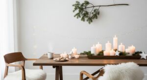 Minimalism continues to shine with Scandi-inspired décor — clean lines, natural woods, and cozy textures. Stick to neutral tones and add warmth with candles, knitted stockings, and wool throws. It’s all about “hygge” — comfort and contentment.