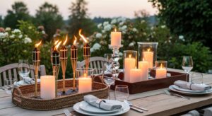 Small touches like citronella candles (for bug control), decorative trays, or matching drinkware make your outdoor entertaining area feel polished and complete.