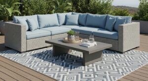 An outdoor rug can define your seating area and tie everything together. Opt for durable, weather-resistant materials and choose colors that complement your décor for a cohesive look.