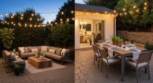 Lighting sets the mood. Use string lights, solar lanterns, or LED pathway lights to create a magical glow. Warm white tones enhance coziness and make your outdoor area feel inviting long after sunset.