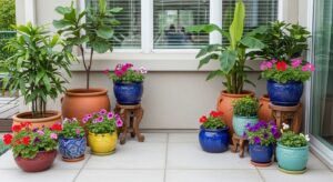 Potted plants, hanging baskets, and garden walls add color and life to your outdoor space. Choose low-maintenance greenery like ferns, lavender, or succulents for easy upkeep.