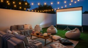 Set the mood with a portable Bluetooth speaker or a discreet sound system. You can also add a projector for outdoor movie nights that everyone will love.