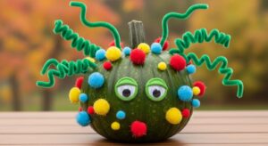 Microbiology meets Halloween! Paint your pumpkin bright green or purple, then attach pipe cleaners, pom-poms, or toothpicks to resemble a playful germ or virus. Add googly eyes for a cartoonish effect.