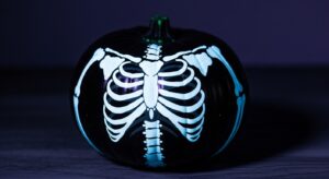 For radiology departments, this one’s a no-brainer. Paint your pumpkin matte black and use white paint or glow-in-the-dark markers to create a skeletal “X-ray” design. You can even make a “fractured pumpkin” with cracks drawn across the surface.