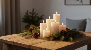 Opt for unscented white candles for a minimalist feel, or choose pine, cinnamon, or vanilla scents for an extra festive touch. If you prefer a safer option, LED flameless candles create the same warm ambiance with no worry.