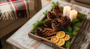 Bring the beauty of nature indoors by incorporating pinecones, twigs, berries, or dried citrus. Place them in glass jars, bowls, or wooden trays for effortless Christmas accents.