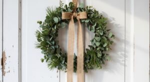 Try one made with eucalyptus, dried oranges, or pine sprigs tied with a neutral ribbon. Simple wreaths are timeless, elegant, and easy to DIY — the perfect symbol of holiday simplicity.