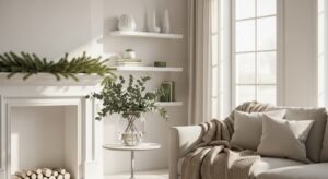 Neutral tones like white, beige, and soft gray make your home feel calm and cozy during the holidays. Add a touch of green with fresh evergreen branches, eucalyptus, or pine garlands for a natural festive look.