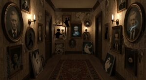 Transform your hallway or living room wall into a spooky art display. Replace everyday artwork with vintage-style portraits, shadowy silhouettes, or eerie prints.