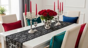 Bring elegance into spooky season with gothic-inspired decor. Think black lace table runners, velvet pillows in jewel tones, or ornate candlesticks with dripping wax.