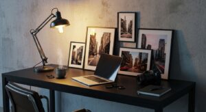 Combine modern furniture with vintage finds. A sleek desk paired with an old leather chair or a thrifted lamp adds charm and depth, embodying the unique mix that defines street style.