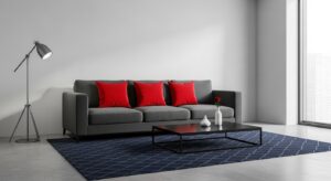 Keep your base muted, but introduce color through accessories—like pillows, artwork, or a rug. Deep red, mustard, or navy accents can instantly make the room feel curated yet relaxed.
