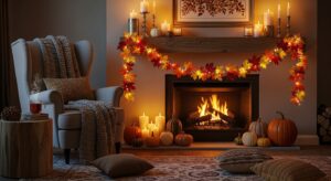 Create a simple leaf garland using cut-out paper leaves or real preserved ones. String them together with twine and hang across the mantel or window for a beautiful fall accent.
